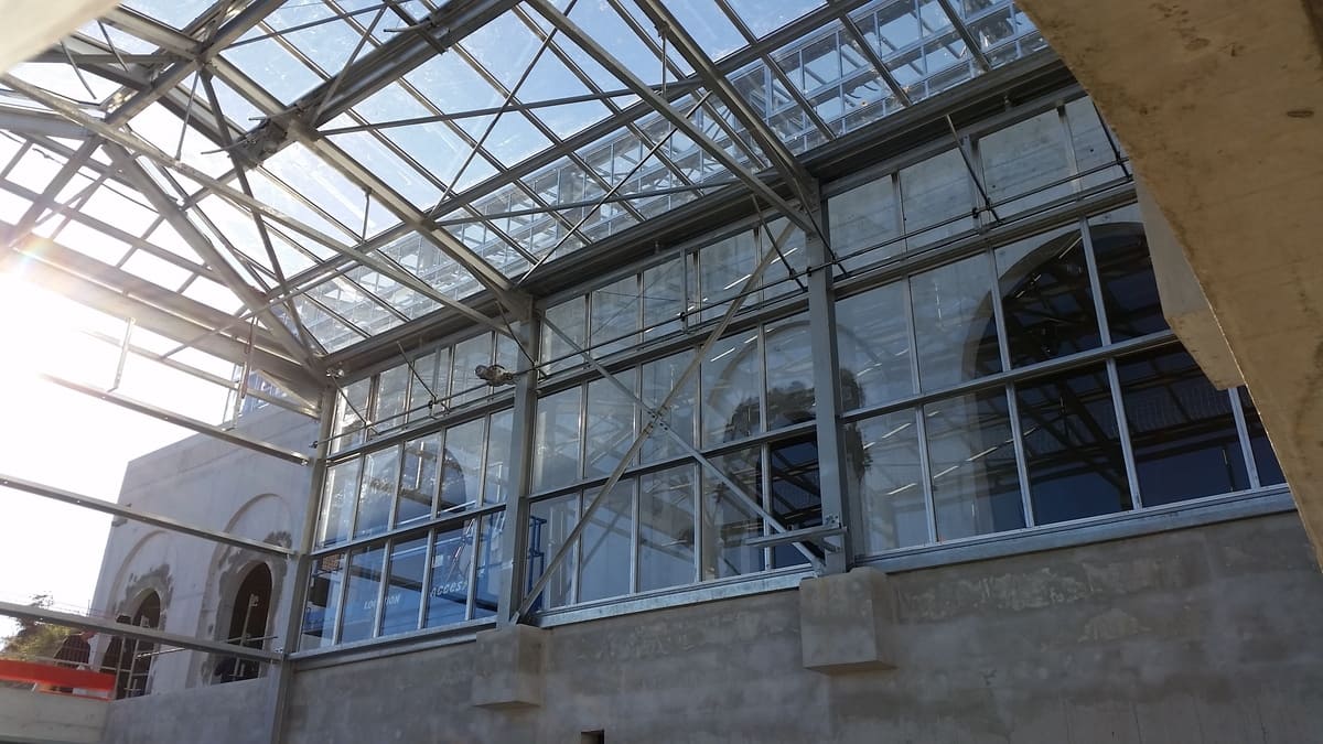 Construction des nouvelles serres du jardin exotique de Monaco en vue du déménagement de l'ensemble des végétaux.